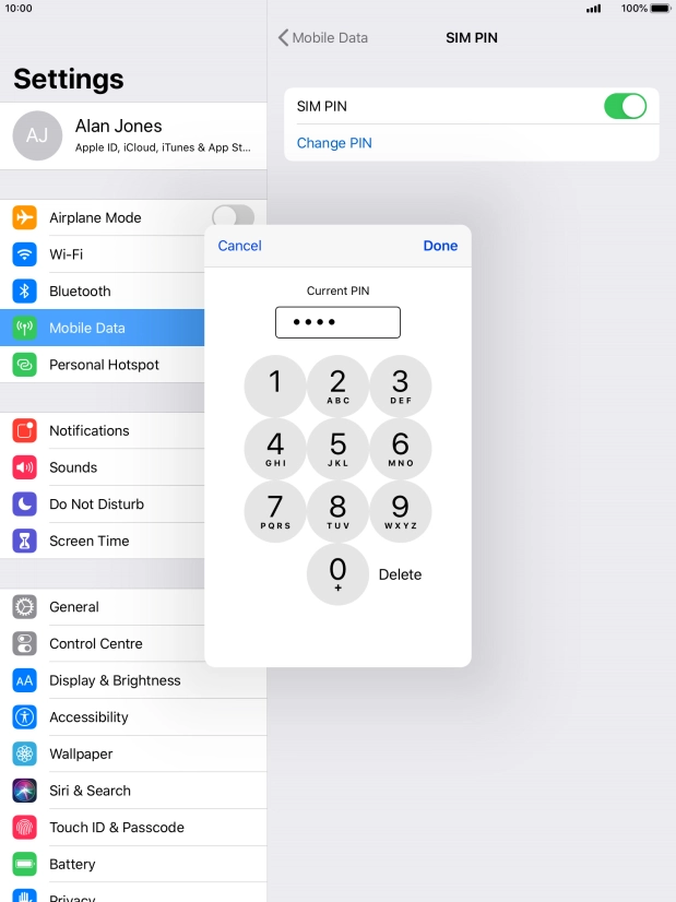 Your PIN protects your SIM from unauthorised use if your tablet should get stolen. You can change your PIN to a PIN of your own choice making it easier to remember. Before you can change your PIN, you need to turn on use of PIN.