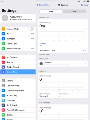Using Screen Time you can get an overview of how much you use your tablet and set time limits on the use of selected apps. To use the function, you need to turn on Screen Time.