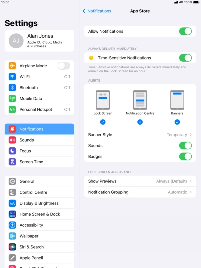 You can set your tablet to display notifications about new messages and appointments in the status bar at the top of the screen.