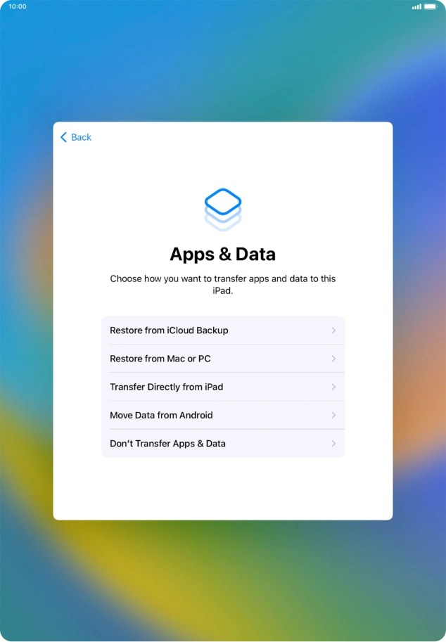 You can restore the content of an iCloud backup when eg. your tablet is activated for the first time and after a factory reset. To restore the content, you need to back up the tablet memory to iCloud.