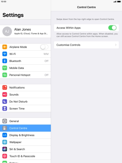 Using Control Centre, you can get quick access to selected functions on your tablet.
