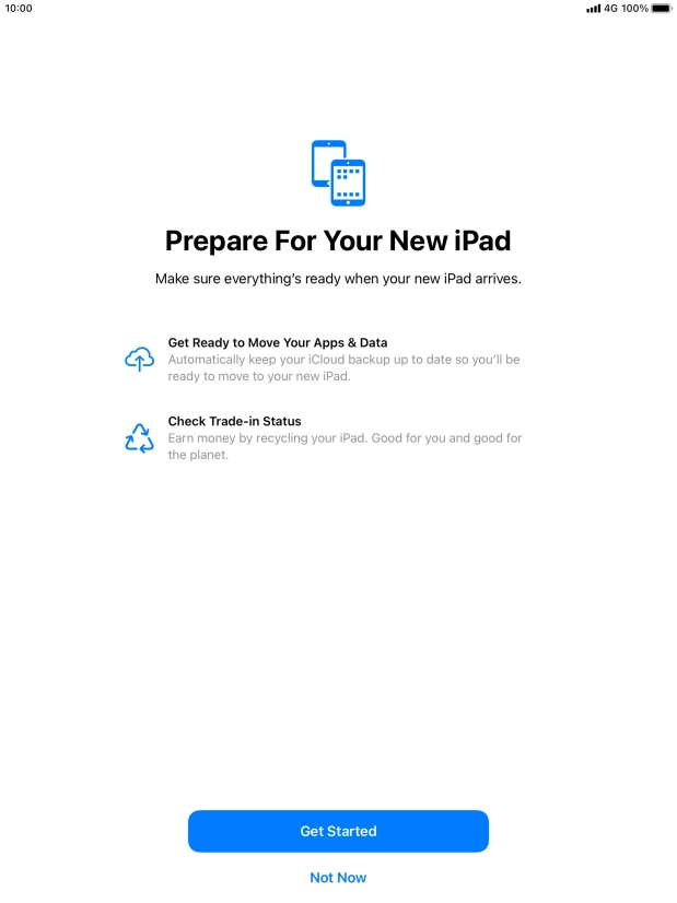 You can temporarily back up the tablet memory to iCloud when transferring content to a new iPad. To prepare transferring content to a new iPad, you need to activate your Apple ID on your tablet.