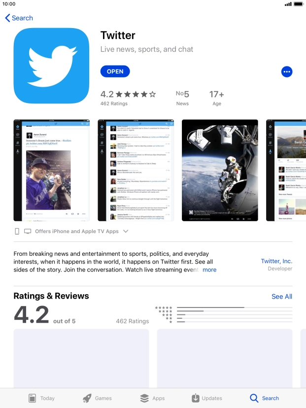 You need to install Twitter in order to use it on your tablet. Before you can install Twitter, you need to set up your tablet for internet and activate your Apple ID.
