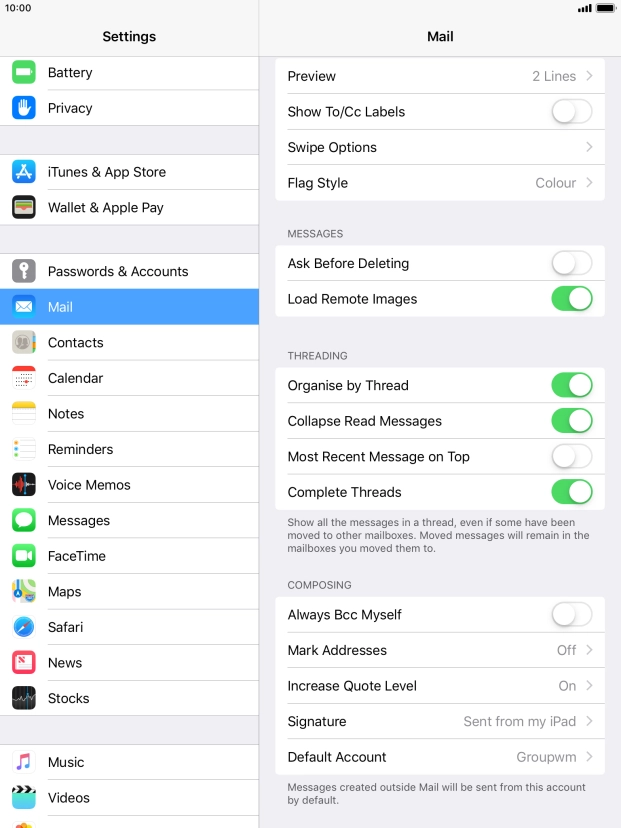 If you've set up more than one email account on your tablet, you can select a default email account. When you send an email from one of your tablet's applications, the default account will be used unless you're asked to select an account before sending the email.