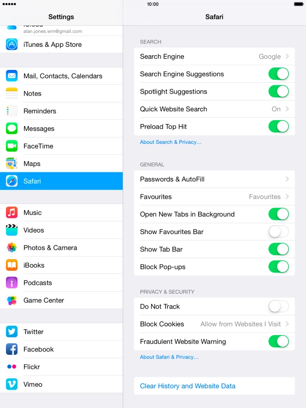 Clear browser data