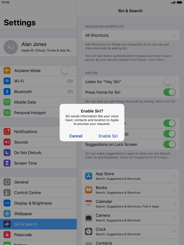 Choose Siri settings