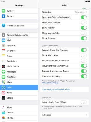 When you use your tablet's internet browser, various data is stored temporarily in the browser memory, such as cache and cookies. If you have problems loading websites, deleting this data may help.