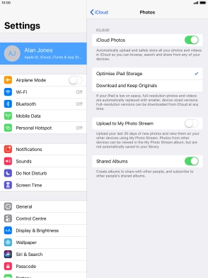 You can synchronise the contents of your tablet with iCloud enabling you to access the contents from different devices or restore them if you lose your tablet. Before you can use iCloud, you need to activate your Apple ID.