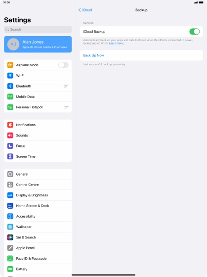You can back up the tablet memory to iCloud to ensure that no data is lost when you update your tablet's software or if you lose your tablet. To back up the tablet memory to iCloud, you need to activate your Apple ID on your tablet and establish a connection to a Wi-Fi network.