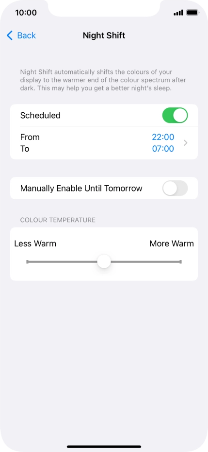 You can set your mobile phone to adjust the screen colours depending on the changing daylight. You can also create a colour change schedule or adjust the colour temperature.