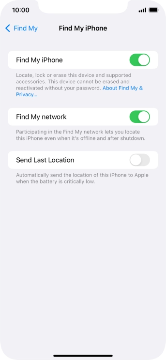 Choose settings for Find My iPhone