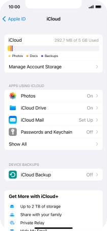 You can back up the phone memory to iCloud to ensure no data is lost when you update your mobile phone's software or if you lose your mobile phone. To back up the phone memory to iCloud, you need to activate your Apple ID on your mobile phone and establish a connection to a Wi-Fi network.