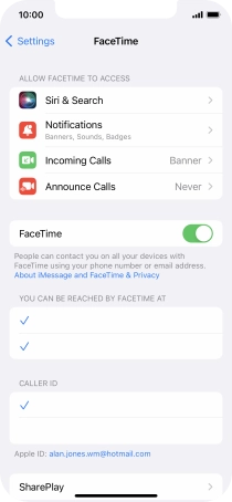 You can make a video call to another device which supports FaceTime. To select settings for FaceTime, you need to activate your Apple ID on your mobile phone.