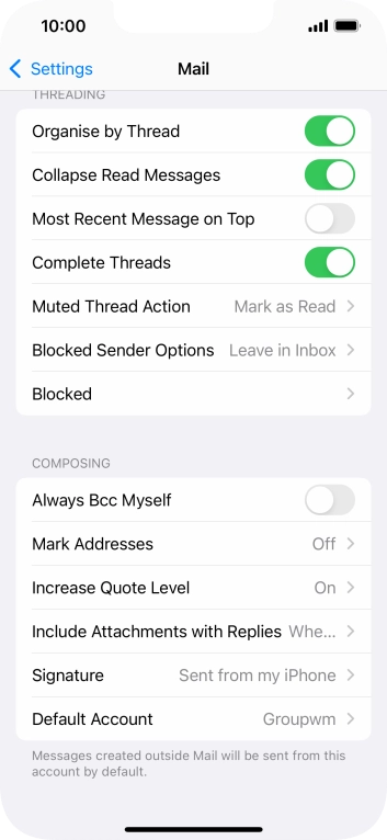 If you've set up more than one email account on your mobile phone, you can select a default email account. When you send an email from one of your mobile phone's applications, the default account will be used unless you're asked to select an account before sending the email.