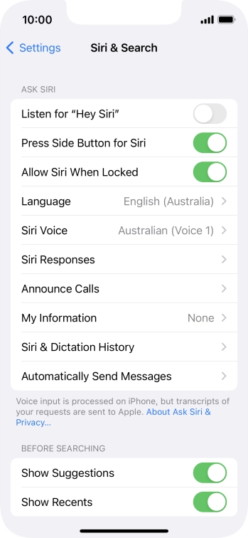 Choose Siri settings