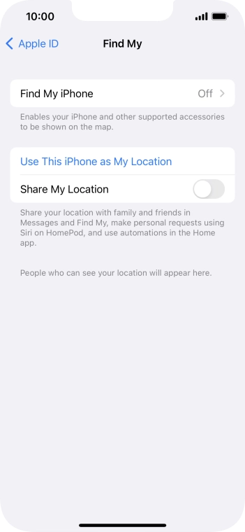 Choose settings for Find My iPhone