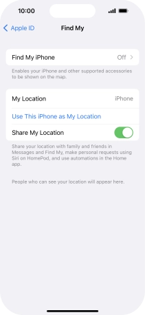 Find My iPhone enables you to find your mobile phone if you lose it or you can lock it should it get stolen. To select settings for Find My iPhone, you need to activate your Apple ID on your mobile phone.