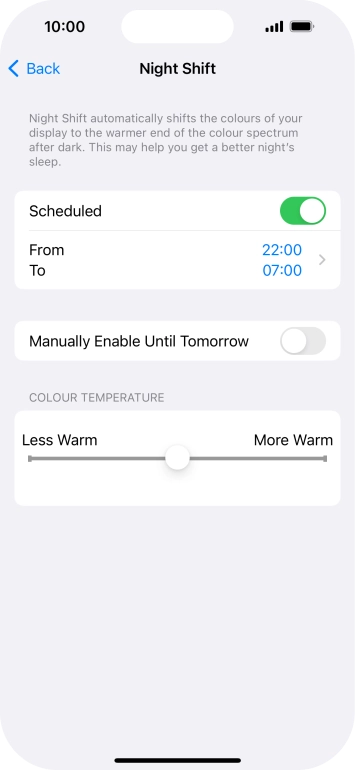 You can set your mobile phone to adjust the screen colours depending on the changing daylight. You can also create a colour change schedule or adjust the colour temperature.