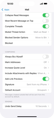 If you've set up more than one email account on your mobile phone, you can select a default email account. When you send an email from one of your mobile phone's applications, the default account will be used unless you're asked to select an account before sending the email.