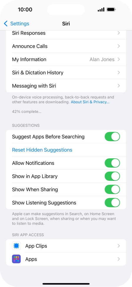 Choose Siri settings