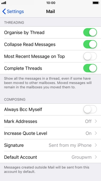 Set default email account