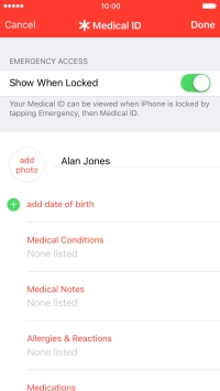 Using Health, you can save health information and see an overview of your health. You can also save emergency information for use in emergencies and share this information with other health and fitness apps.