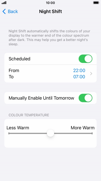 You can set your mobile phone to adjust the screen colours depending on the changing daylight. You can also create a colour change schedule or adjust the colour temperature.