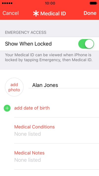Using Health, you can save health information and see an overview of your health. You can also save emergency information for use in emergencies and share this information with other health and fitness apps.