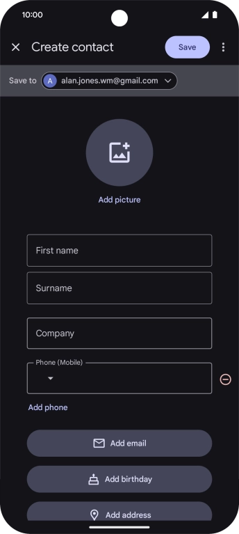 You can save your contacts to your Google account and synchronise them between all your Android devices. You can save additional information to a contact such as email address and date of birth.