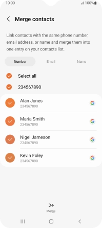 If identical contacts appear in the address book, you can merge them so they will appear only once.
