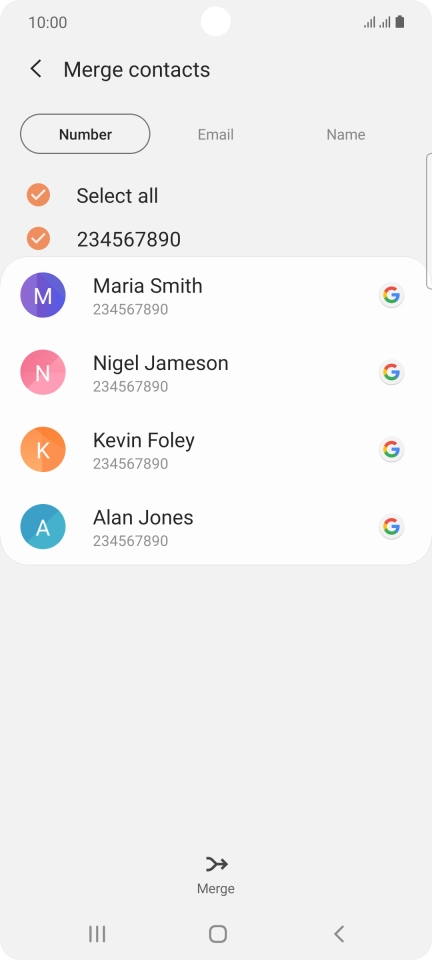 If identical contacts appear in the address book, you can merge them so they will appear only once.