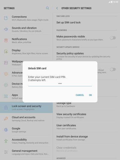 Your PIN protects your SIM from unauthorised use if your tablet should get stolen. If use of PIN is turned on, it needs to be keyed in when you turn on your tablet.