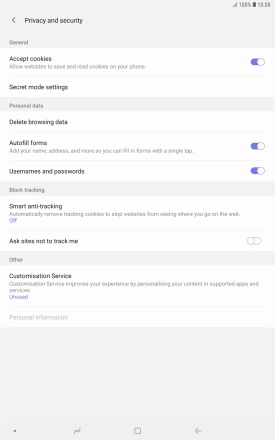 When you use your tablet's internet browser, various data is stored temporarily in the browser memory, such as cache and cookies. If you have problems loading websites, deleting this data may help.
