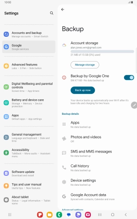 Backing up the tablet memory