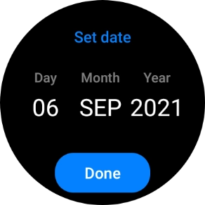 The date and time are automatically set from your mobile phone but can be set manually if, eg., your smartwatch isn't connected to your mobile phone.