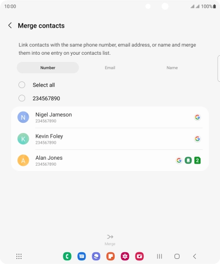 If identical contacts appear in the address book, you can merge them so they will appear only once.